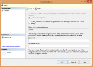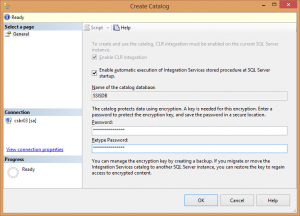 2.1.3 – No Pesquisador de Objetos, expanda o nó servidor, clique com o botão direito do mouse no nó Integration Services e clique em Criar Catálogo.