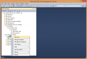 Ao terminar a importação do projeto no Catalogo do Integration Services, podemos promove-lo ao ambiente onde ele irá efetivamente trabalhar, como no Agente do SQL Server como um Job. Para isto basta seguir os passos abaixo.